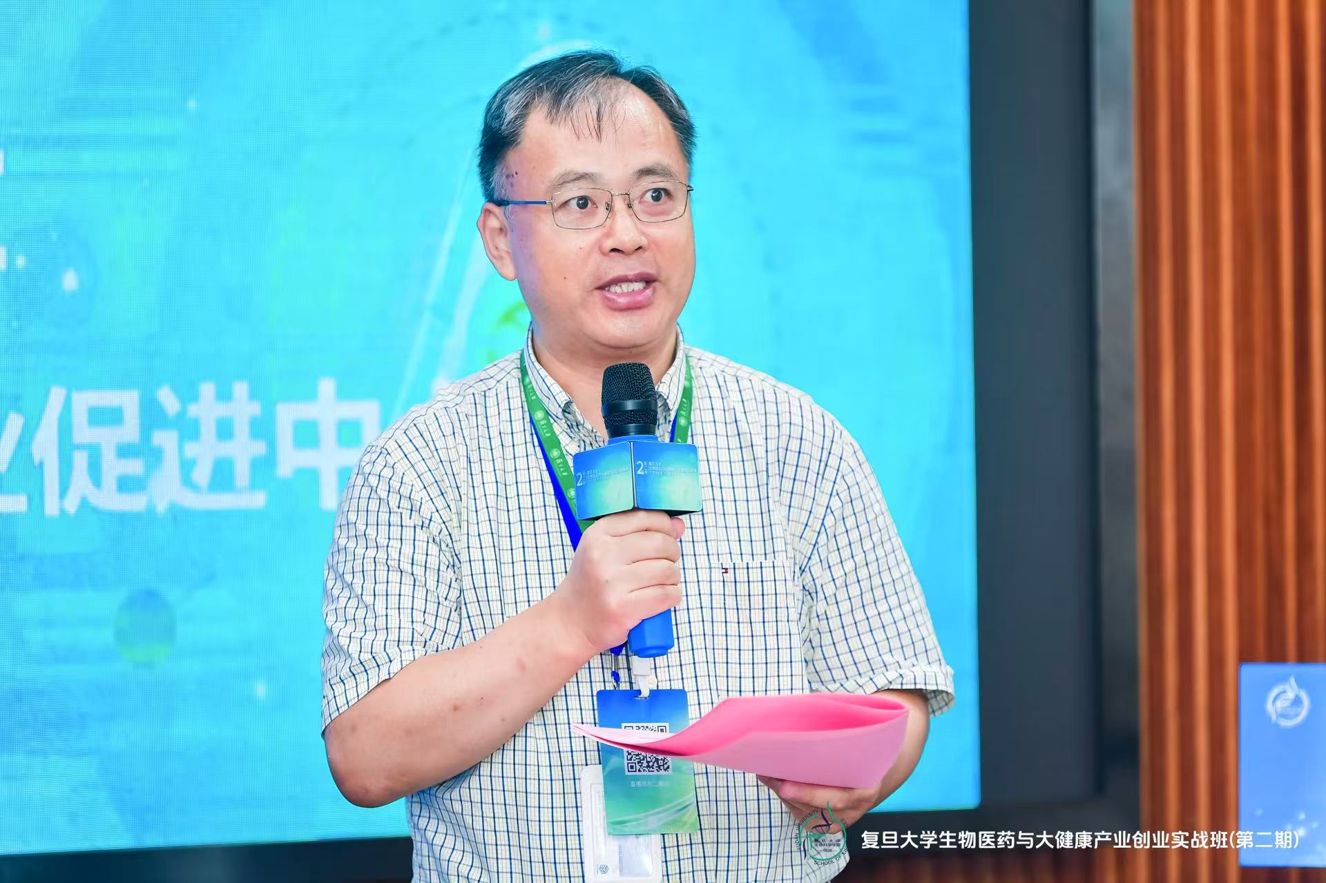 随后,上海市生物医药科技产业促进中心主任刘厚佳与复旦大学技术转移中心主任仲实先后致辞。刘厚佳主任结合上海生物医药产业发展布局指出,复旦生科院的创业实战班精准对接产业需求,为上海乃至全国生物医药产业输送了关键人才,期待二期学员能借助平台实现企业与产业的协同发展。仲实主任则从技术转移角度强调,复旦大学将开放更多科研资源与转化渠道,推动学员企业与校内科研团队深度合作,打通“科研 - 产业”转化堵点。
