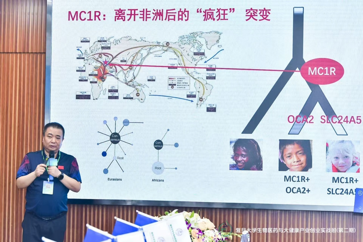 随后,中国科学院院士、复旦大学生命科学学院金力教授讲授《流动的基因》。他从基因科学的前沿进展出发,结合生物医药产业发展趋势,解读基因技术在疾病诊断、药物研发、精准医疗等领域的应用价值。“生物医药产业的创新离不开基础科学的支撑,希望大家能以更广阔的视野看待产业发展,在技术创新与产业落地中找到平衡点。”