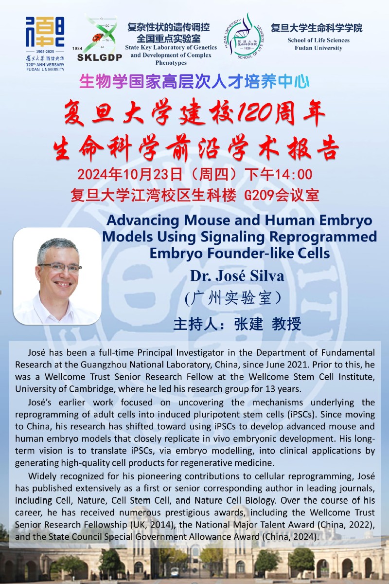 生命科学前沿学术报告-2025-10-23(周四) 下午14:00 ,Dr. José Silva (广州实验室)