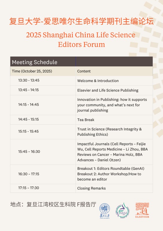 复旦大学-爱思唯尔生命科学期刊主编论坛--2025-10-25(周六)13:30