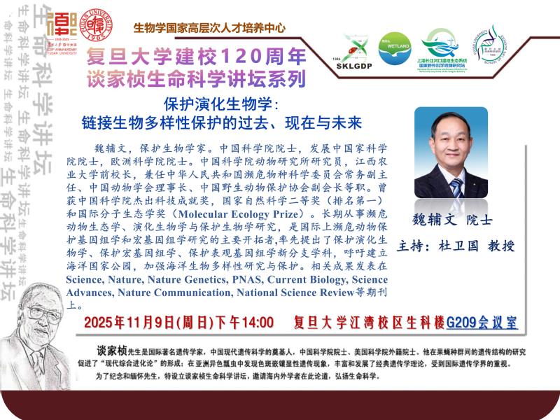 谈家桢生命科学讲坛-2025-11-09(周日)14:00,魏辅文 院士(中国科学院动物研究所)