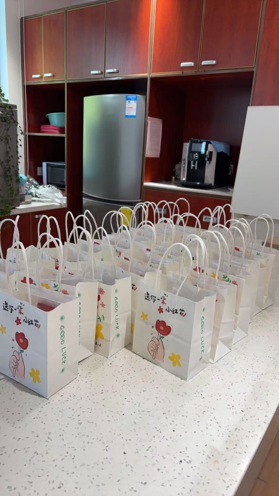 在「植」愈系中药植物挂件制作环节,参与者们专注地将甘草、血藤、黄芪等中药或者橡果、松球等植物装饰材料打孔穿环再与串珠和金色小扫把形态的流苏组合在一起做成漂亮的挂饰。中药承载着‘甘甜常伴、血脉通达、元气满满’的诚挚祝愿,小扫把寄托了“扫去科研与生活中的烦恼”的美好寓意。 18厘米的轻巧尺寸,让这份兼具实用性与纪念意义的挂件成为日常通勤中的“治愈小物”。