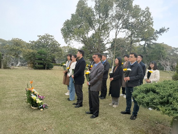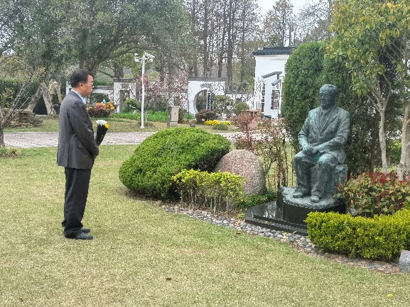 滨海古园内松柏苍翠,谈家桢先生纪念像静静矗立。祭扫活动在庄严肃穆的氛围中拉开帷幕,在现场工作人员的主持下,全体师生整齐肃立,向谈家桢先生纪念像三鞠躬,表达对谈先生的崇高敬意与无限追思。仪式上,卢大儒教授作为代表,向谈先生汇报了学院近期在学科建设、科研攻关、人才培养、服务国家社会发展等方面取得的突破与进展。他表示,学院师生将始终秉承先生“坚持真理、科学报国”的初心,在新时代生命科学的发展中勇立潮头、砥砺奋进。
